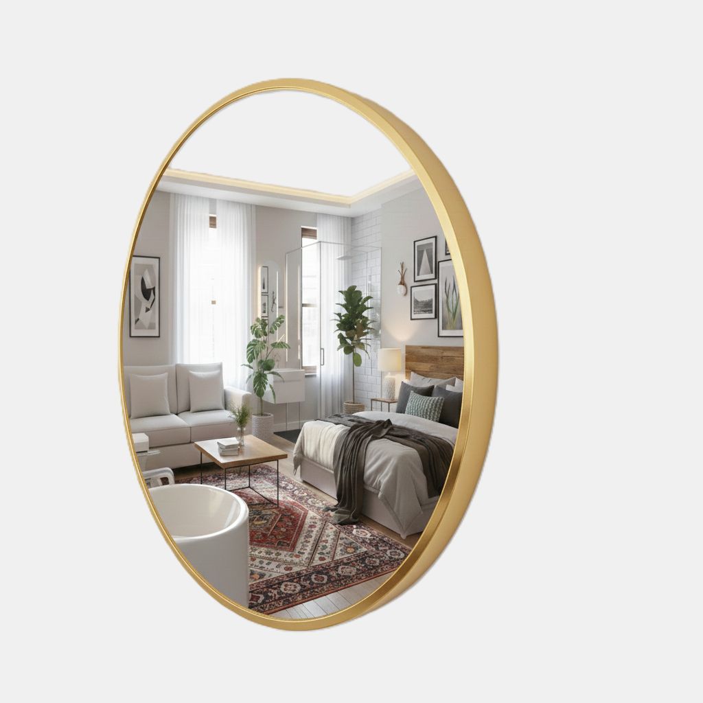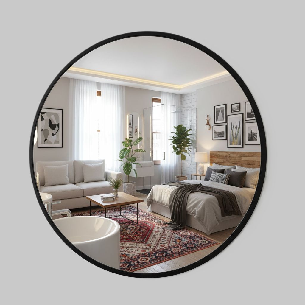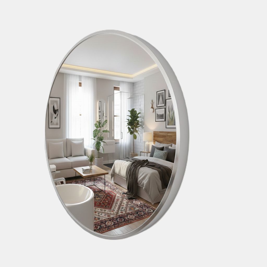 Mekansal Derinlik: Yuvarlak formun yumuşatıcı etkisi ve aynanın ışığı yansıtma özelliği sayesinde dar alanlarınız daha geniş ve ferah görünür.